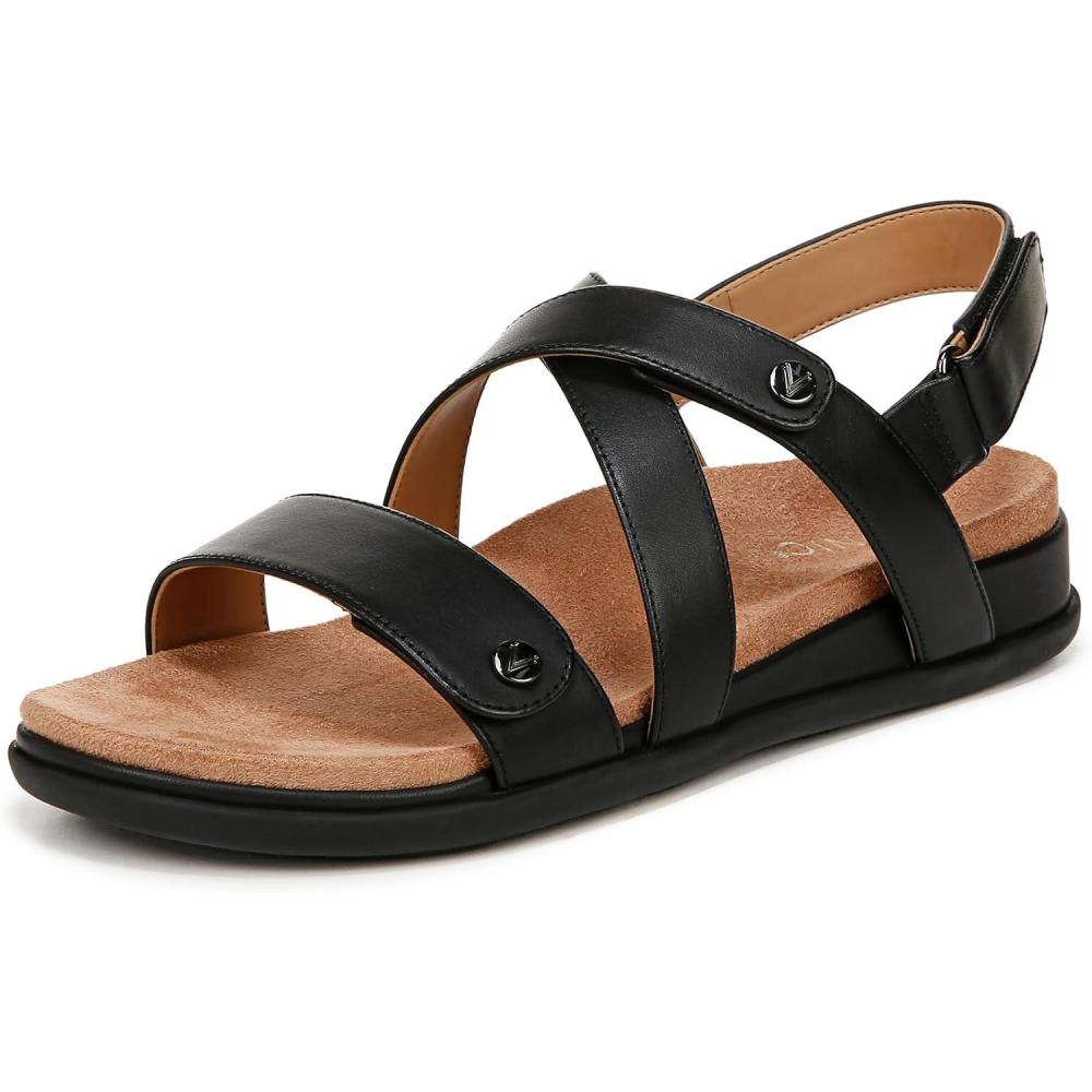 Vionic womens Cypress Strappy Sandals(Black Leather)