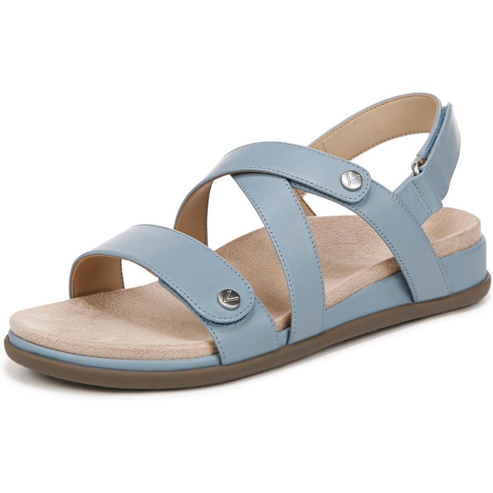 Vionic womens Cypress Strappy Sandals(Vintage Blue Haze Leather)